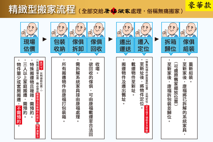 你有聽過無痛搬家嗎 ? 不用自己打包,一切都交給康福處理的搬家方式。